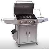 EDELSTAHL GASGRILL Silber, Mülleimer + neu Knopf GAS GRILL GRILLWAGEN BARBECUE BBQ MIT TEMPERATURANZEIGE Reviews