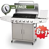 6+1 EDELSTAHL BBQ GASGRILL mit Temperaturanzeige + Timer Kaufen Test